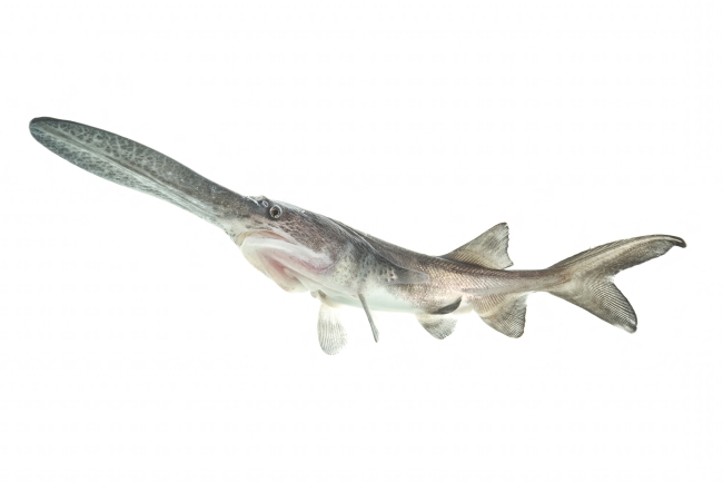 American paddlefish are a primitive fish. Paddlefish have skeletons comprised of cartilage, not bone, like sharks. Paddlefish are filter feeders and feed by swimming through open water with their mouths open and allowing their close-set gill rakers to capture microscopic food.