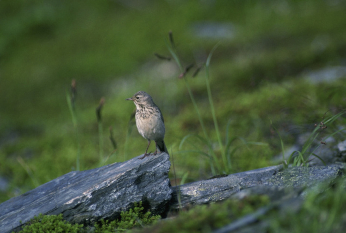 Pipit standing on black rock on Pillar Mountain, Kodiak Island. For more information about shorebirds birds visit http://www.fws.gov/birds/.