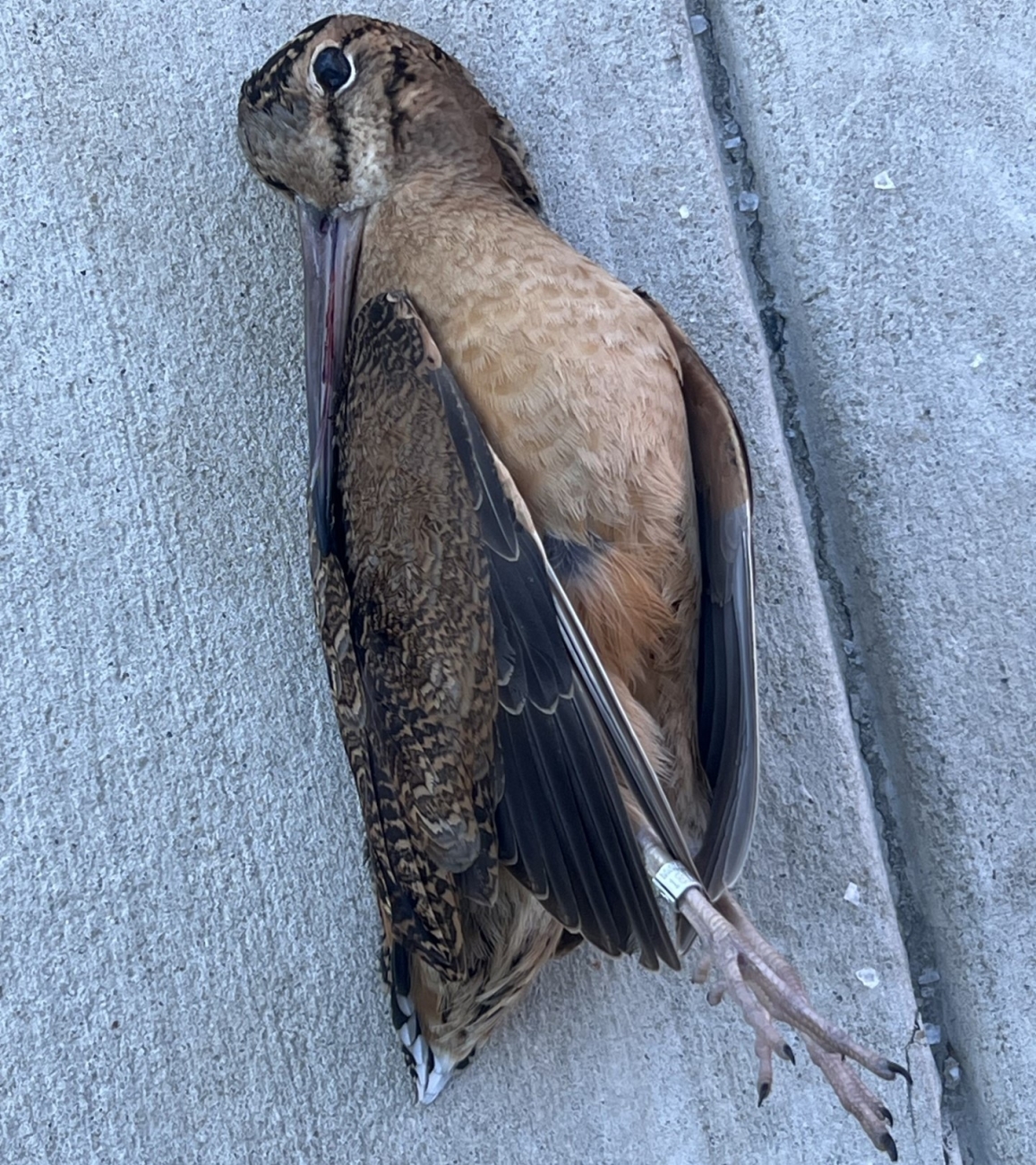An American woodcock found dead after a window collision in Philadelphia.