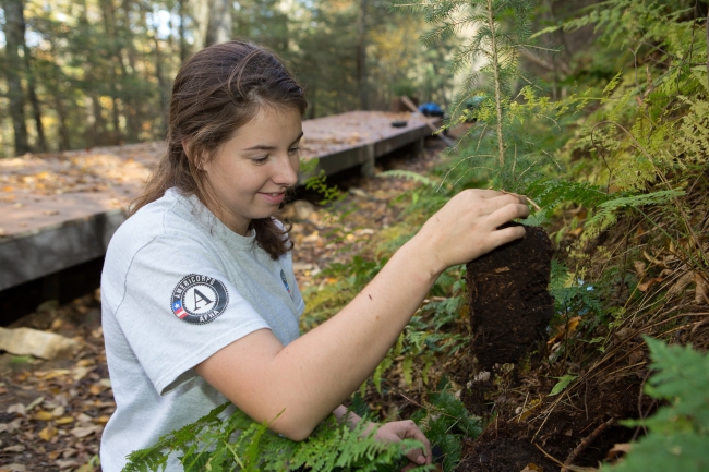 Americorps volunteer plants tree