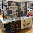 Photo of outreach table full of free handouts, brochures, posters, etc. set-up at a local school event.