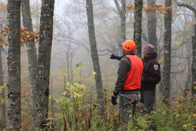 Andrew Henderson and Sue Cameron survey a red spruce tree planting site in Tennessee