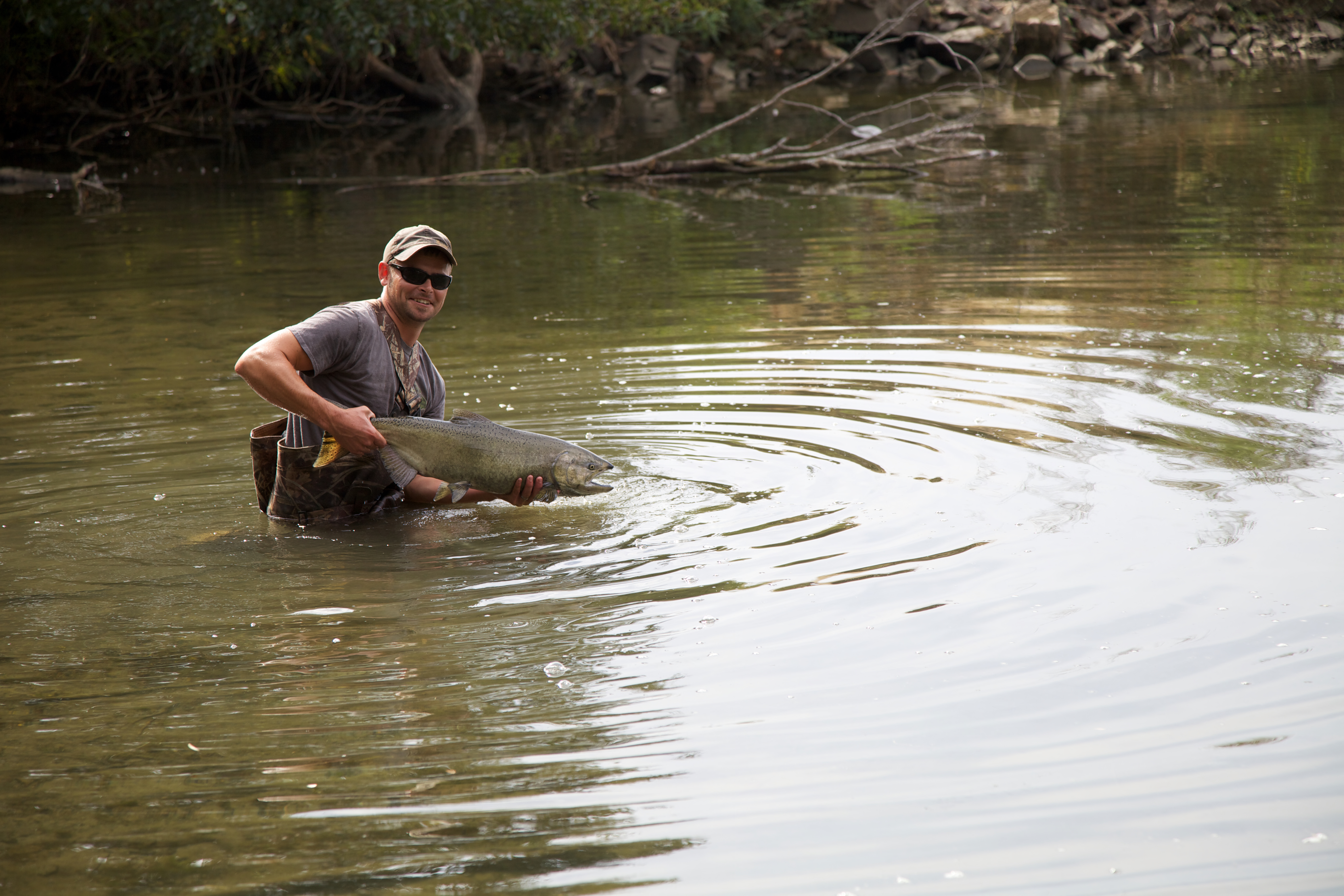 Angler holds a Fall Chinook salmon