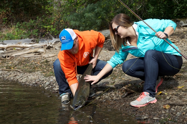Anglers release a salmon