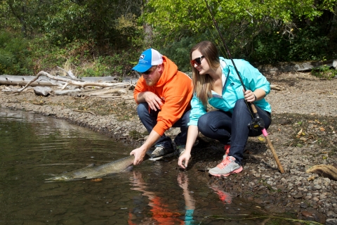 Anglers release a salmon