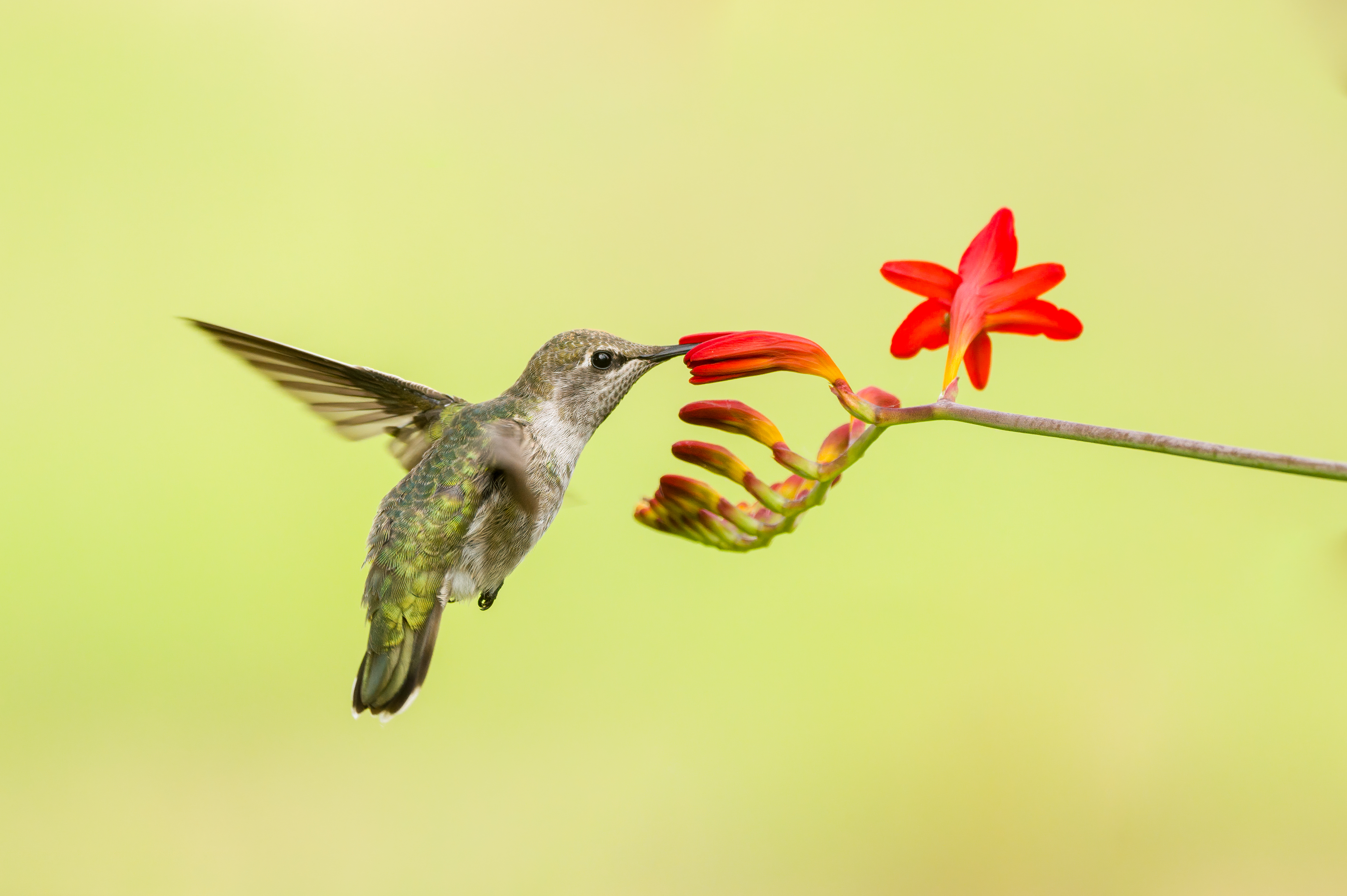 Anna's hummingbird sipping nectar from a red flower at Julia Butler Hansen Refuge for the Columbian White-Tailed Deer