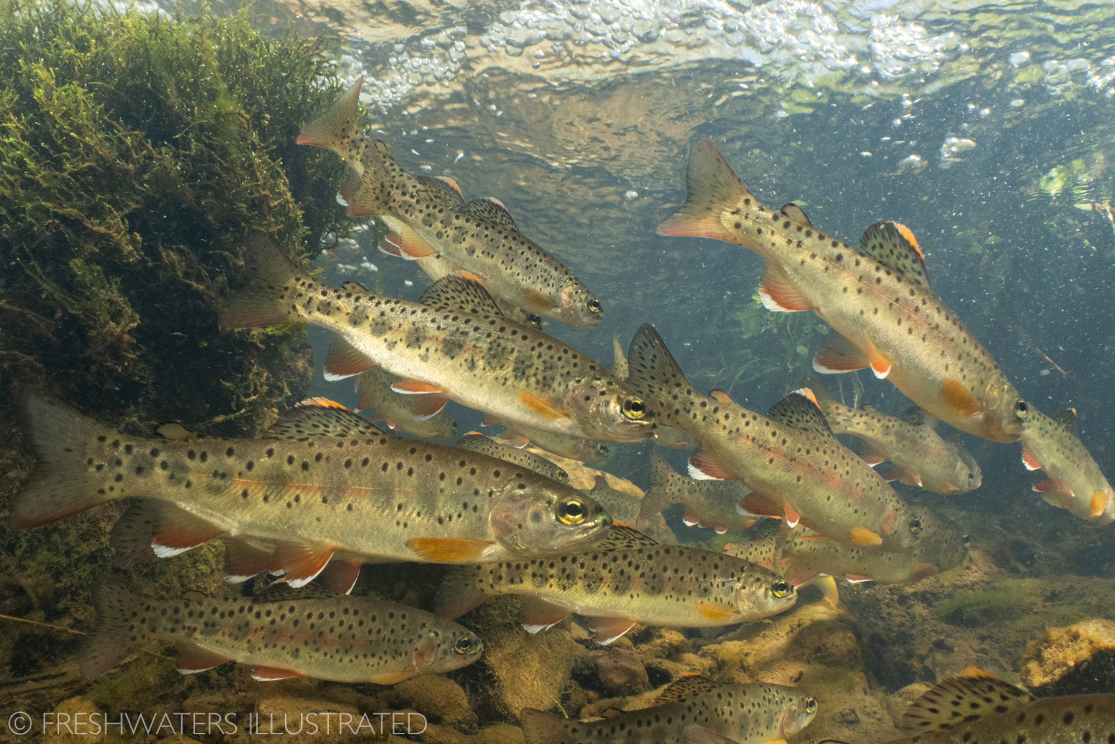 A school of Apache trout swim in Soldier Creek, Arizona.