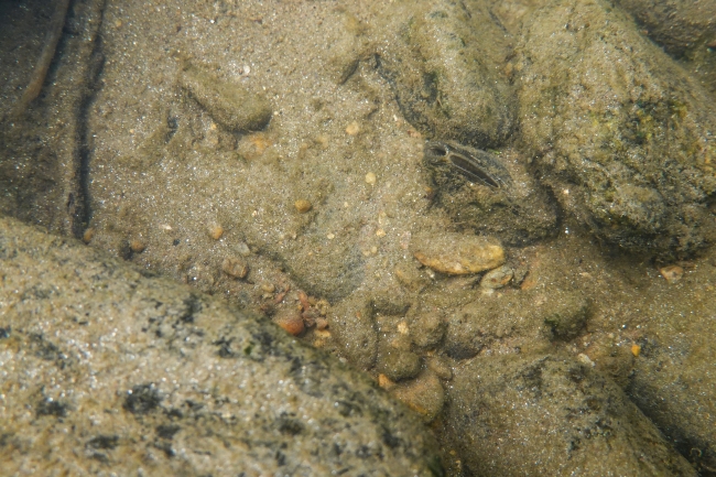 An Appalachian elktoe mussel on the bottom of the West Fork of the Pigeon River, Haywood County, NC.