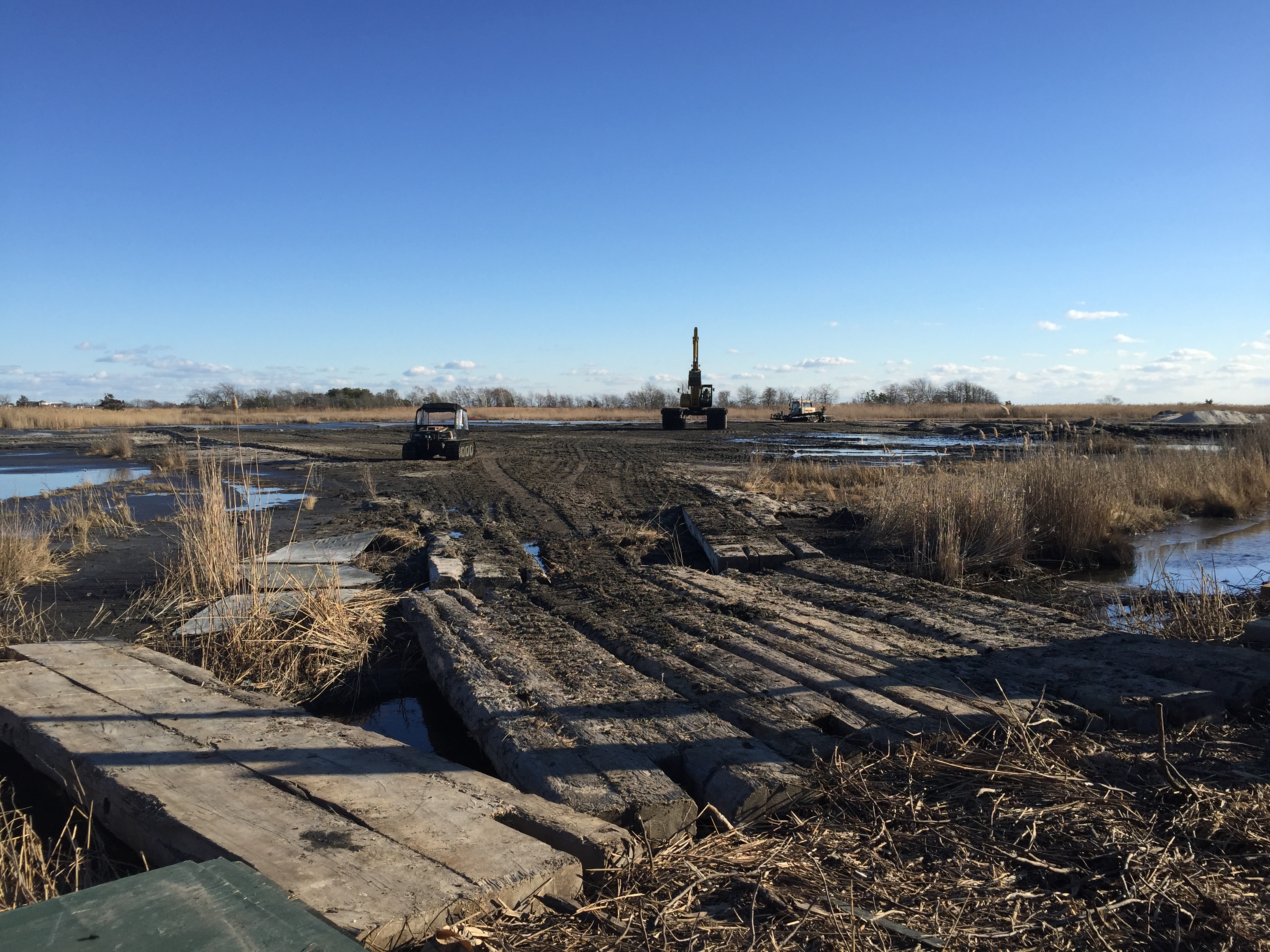Argo, Excavator, and Snowcat on Salt Marsh During Grading 2016 Wertheim