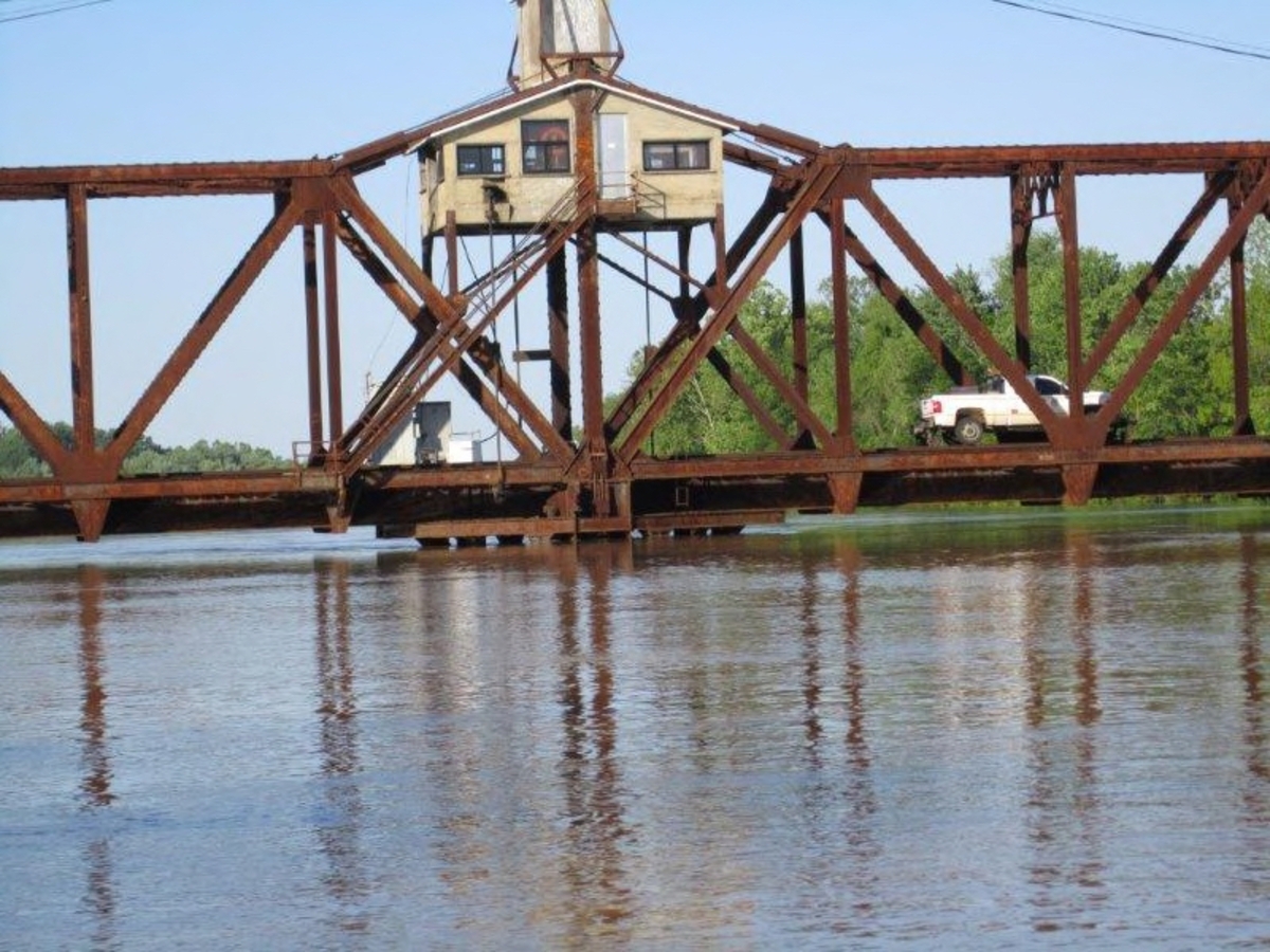 Water rose to just below the railroad bridge crossing the White River National Wildlife Refuge near DeWitt, Arkansas.