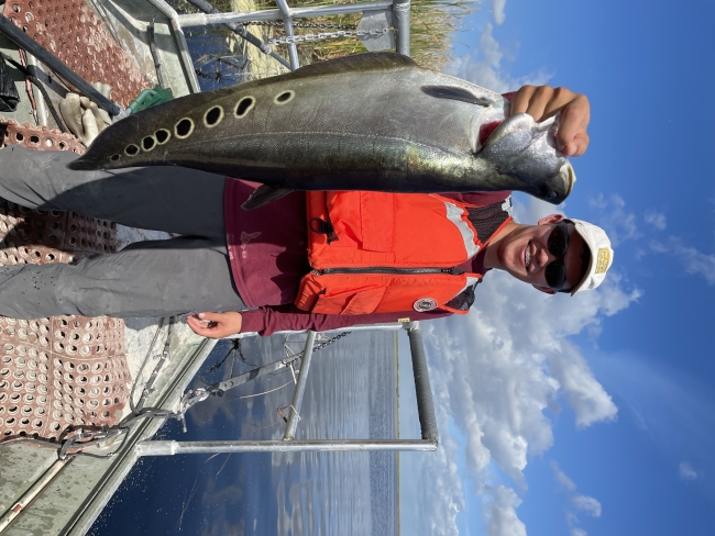 Arthur R. Marshall Loxahatchee NWR intern Ian Jin displaying a non-native clown knifefish collected during electrofishing surveys of the Refuge's perimeter canals.