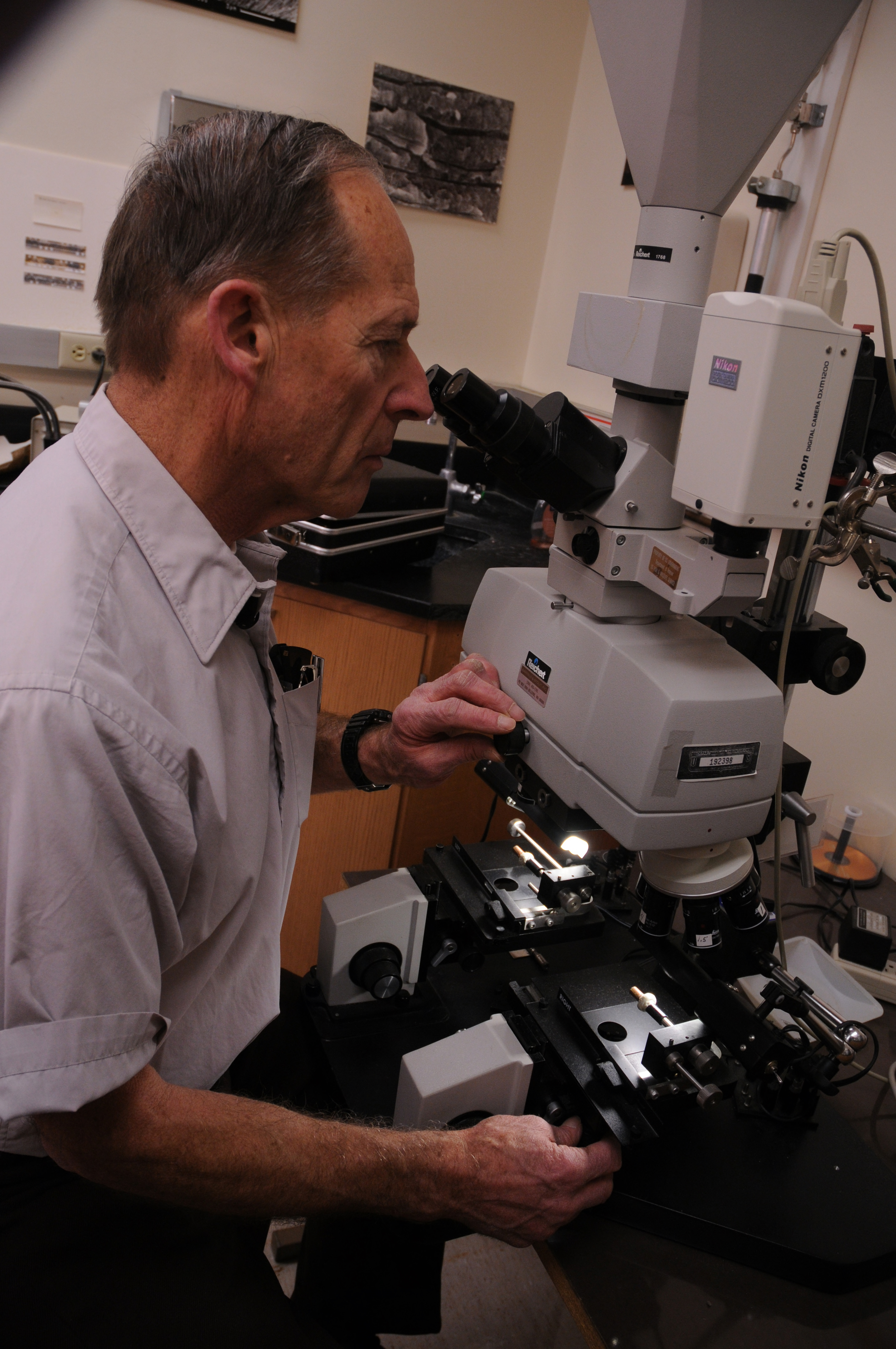 Mike Scanlan, Firearms Examiner, working on bullet matching.