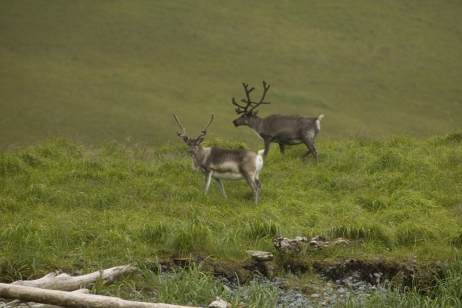 Two reindeer on Atka Island which is part of the Aleutian Islands.