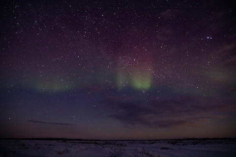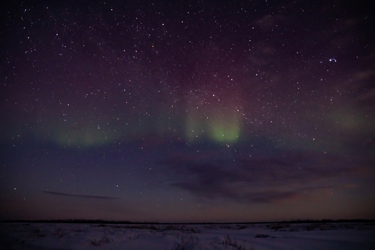 A very faint aurora borealis above the lake. Lynx Project At Yukon Flats National Wildlife Refuge.