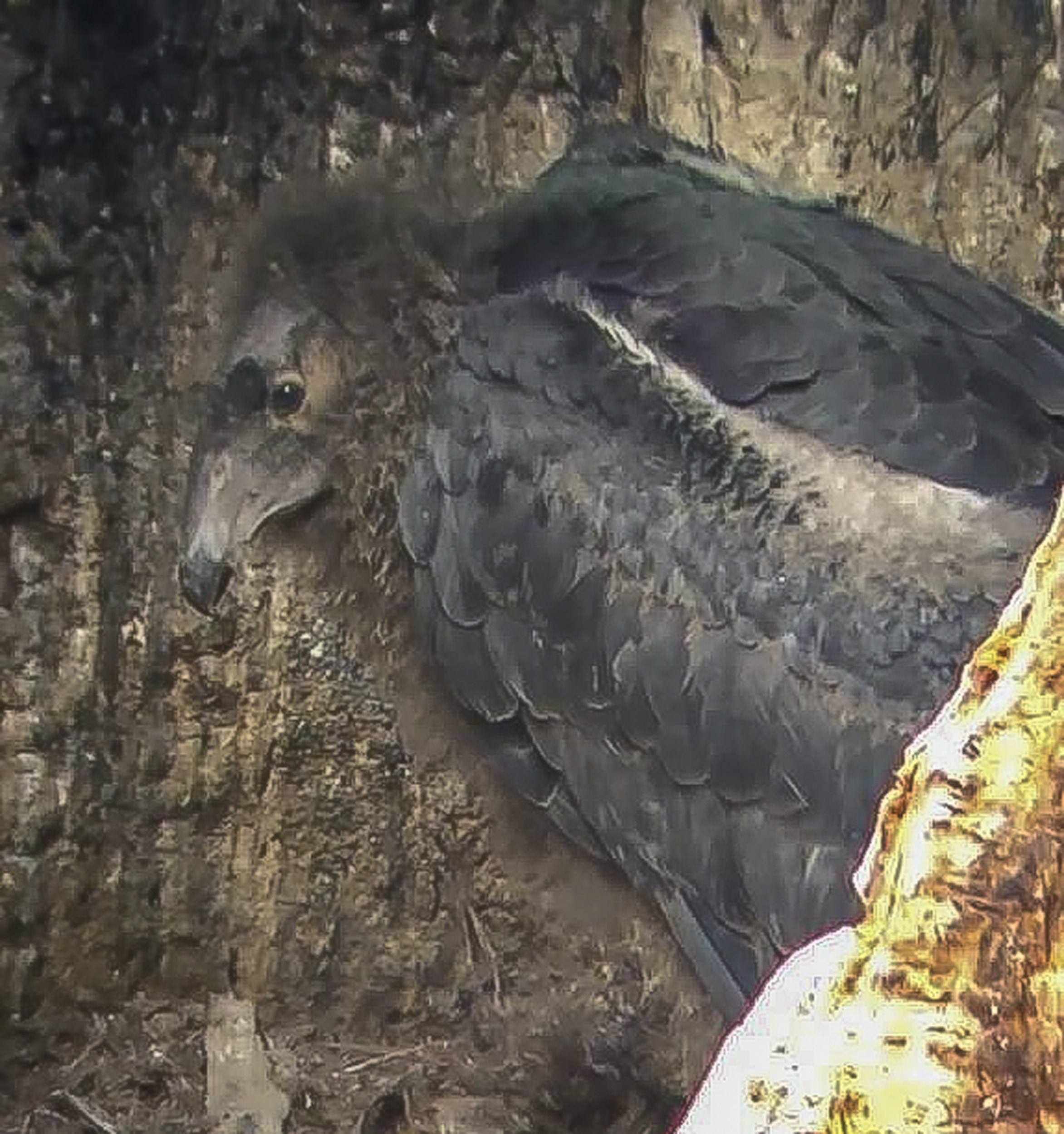 Baby condor "Iniko" first seen after the Dolan Fire burned through the nesting territory in Big Sur, California. Iniko is among three condor chicks that survived the Dolan Fire. Photo courtesy of Ventana Wildlife Society.