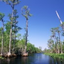 Bald cypress trees lining each side of canoe trails in the Okefenokee National Wildlife Refuge. Aquatic environments; Environments (Natural); Scenics; Ecosystems; Trees;
