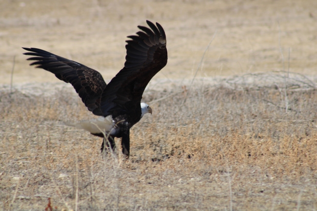 Bald eagle flapping wings at Maxwell National Wildlife Refuge