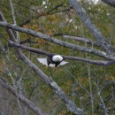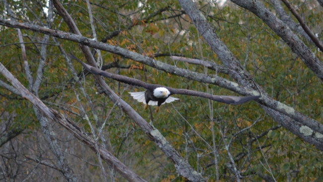 Bald eagle takes flight over Howell Pond in Pleasant Mount, PA.