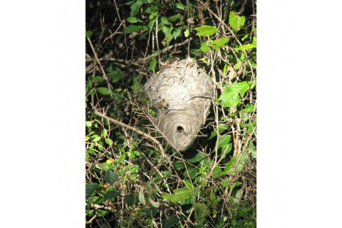 Bald-faced hornet's nest at Wolf Lake reservoir in Franklin County, Pennsylvania.