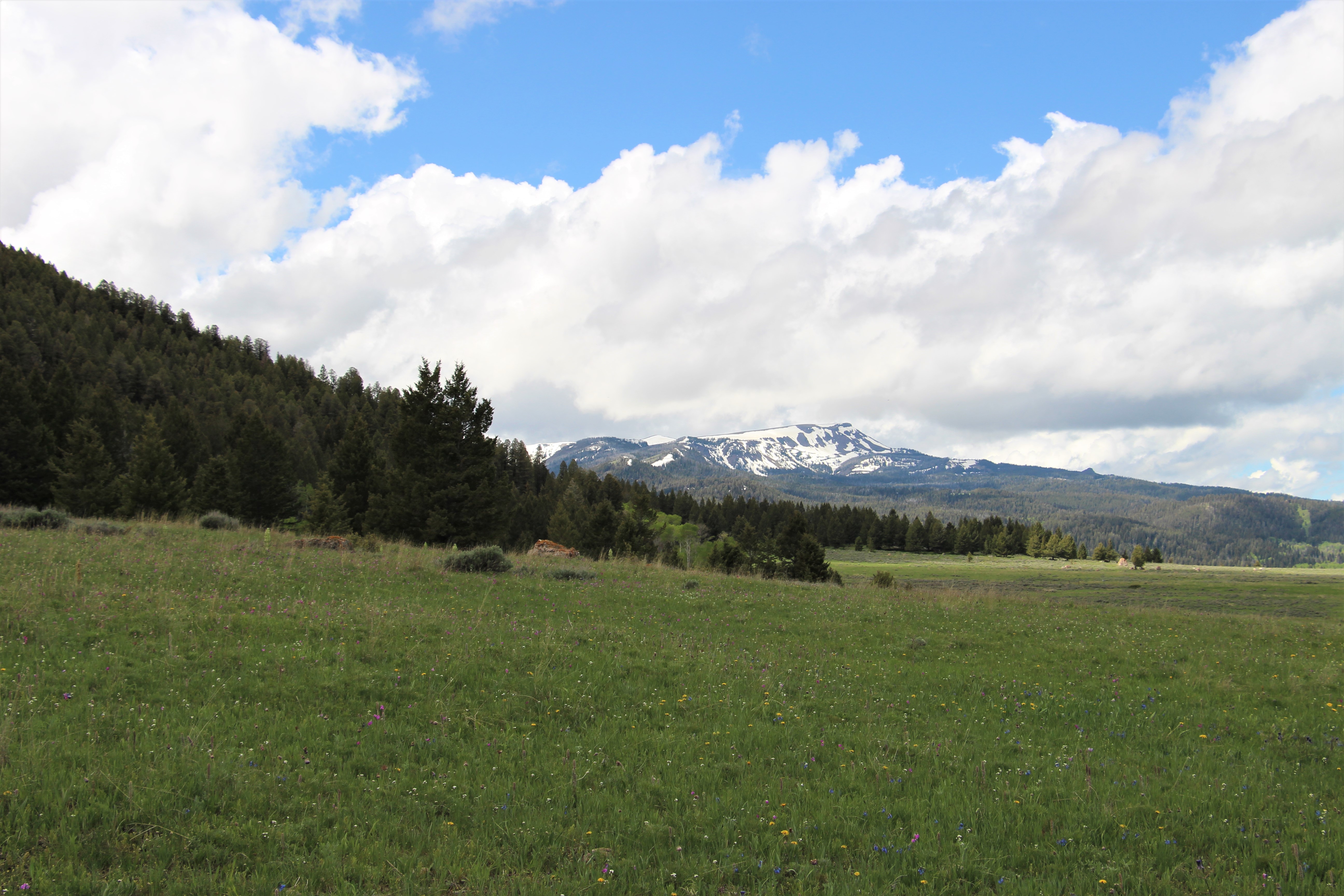 Spring at Red Rock Lakes National Wildlife Refuge comes with blue skies, puffy white clouds, carpets of green grass adorned with wildflowers and still snow capped mountains like the one in the background named Baldy. Photo by Cortez Rohr/USFWS