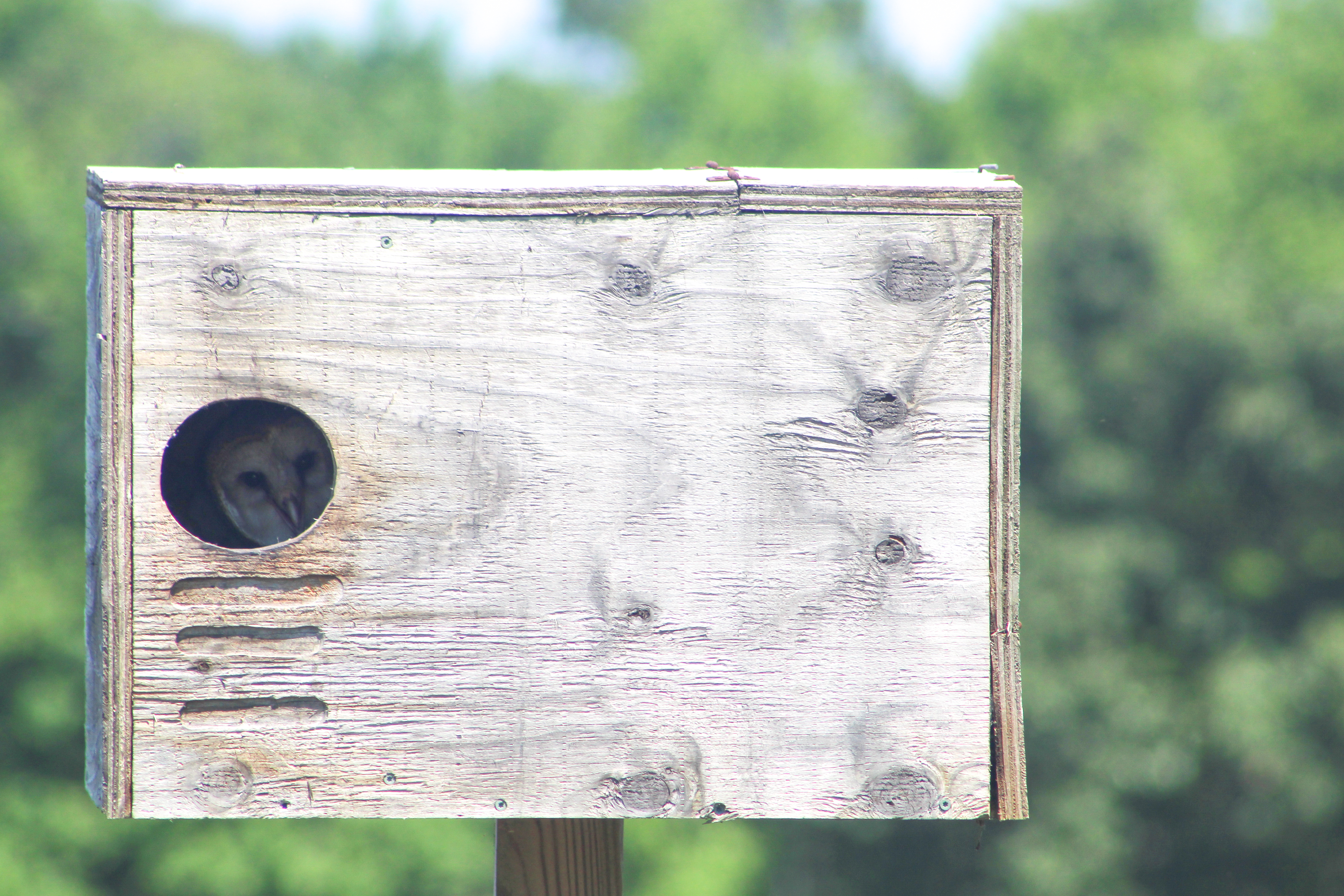 Barn owl in nest box at Blackwater National Wildlife Refuge