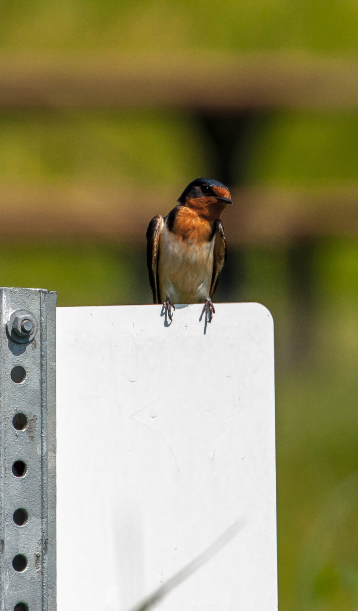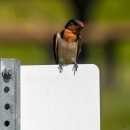 Barn Swallow perched on sign