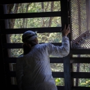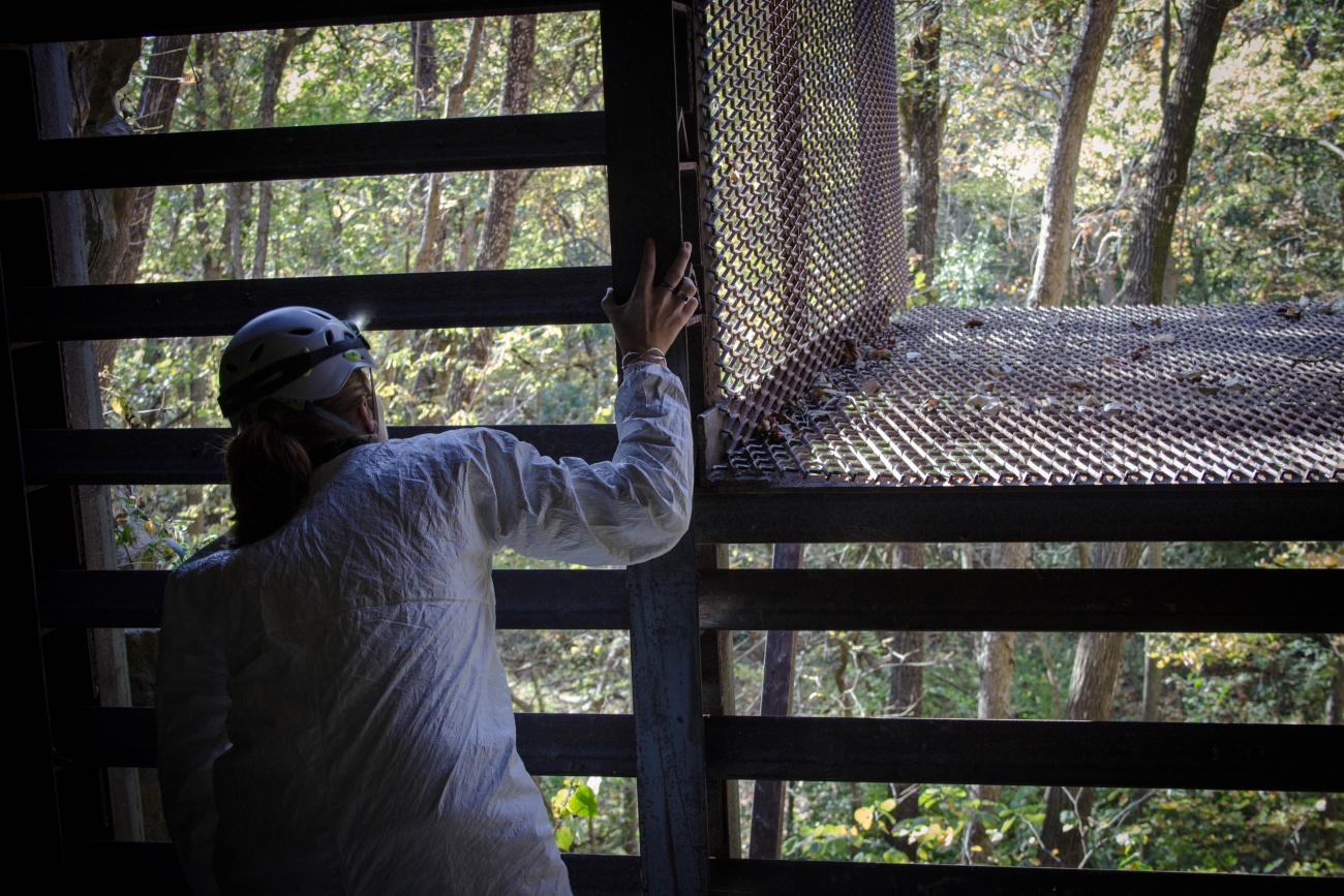 A biologist inspects a bat gate at Sodalis Nature Preserve in Missouri.