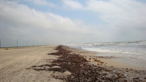 Beach with waterfowl at Anahauc National Wildlife Refuge.