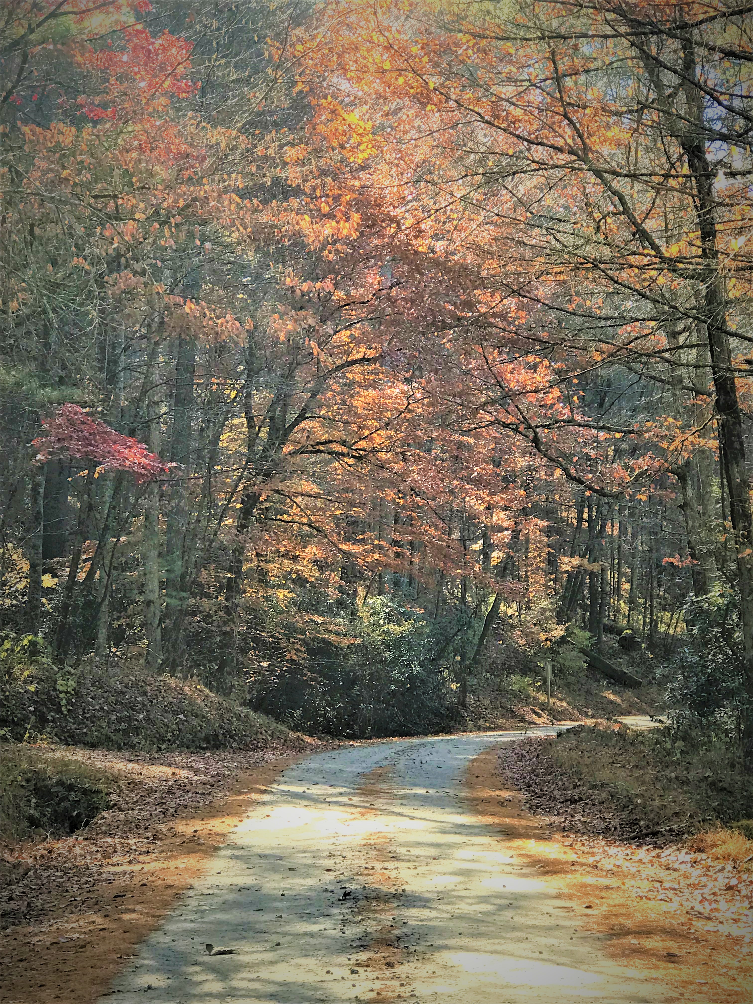 Beautiful fall scenery on Rock Creek Road leading to Chattahoochee Forest National Fish Hatchery