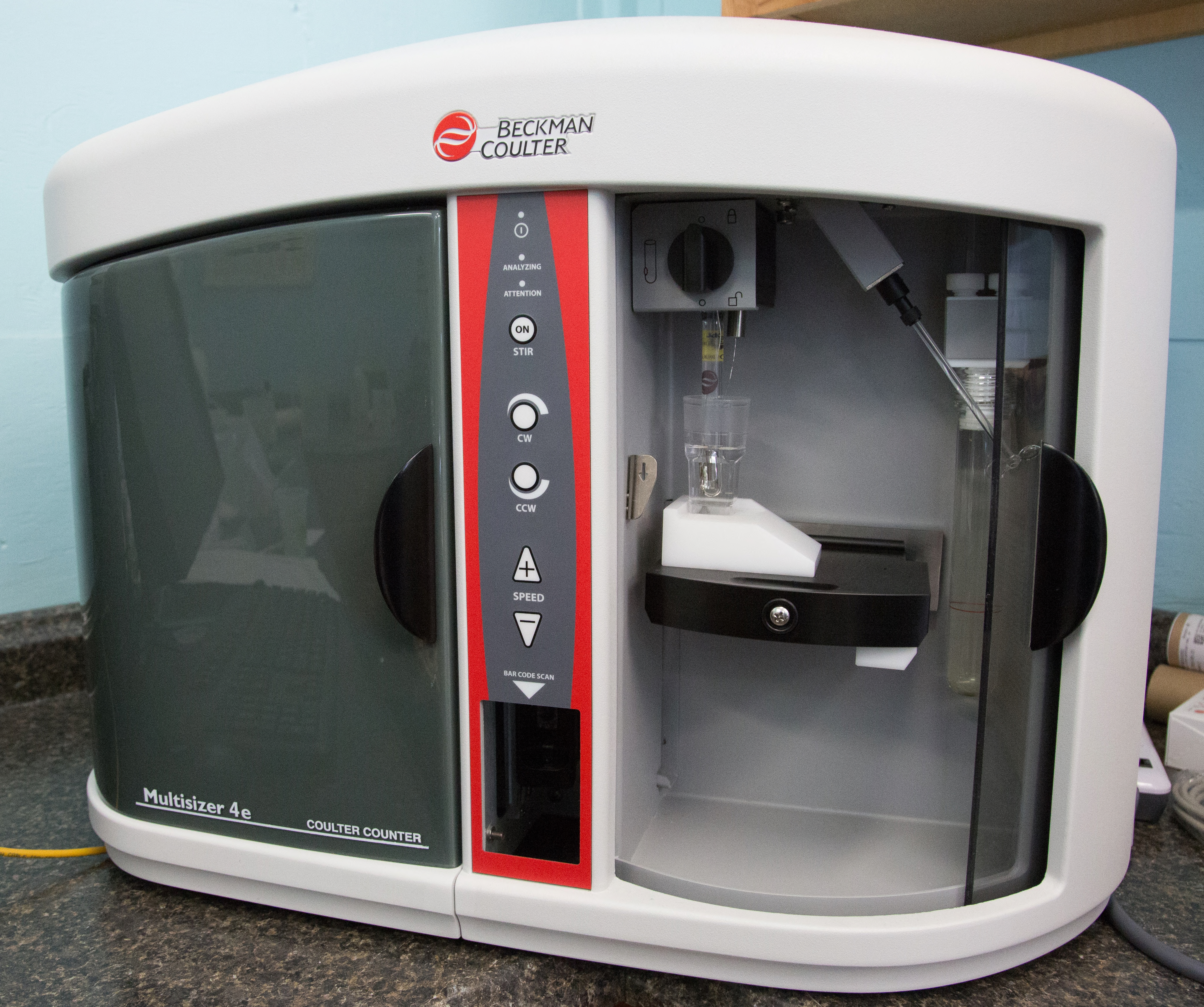The Beckman Coulter Multisizer cell counter at Virginia Fisheries and Aquatic Wildlife Center at Harrison Lake National Fish Hatchery. The multisizer can be used to track feed concentrations in the mussel culture chambers. Photo: Ryan Hagerty, USFWS.