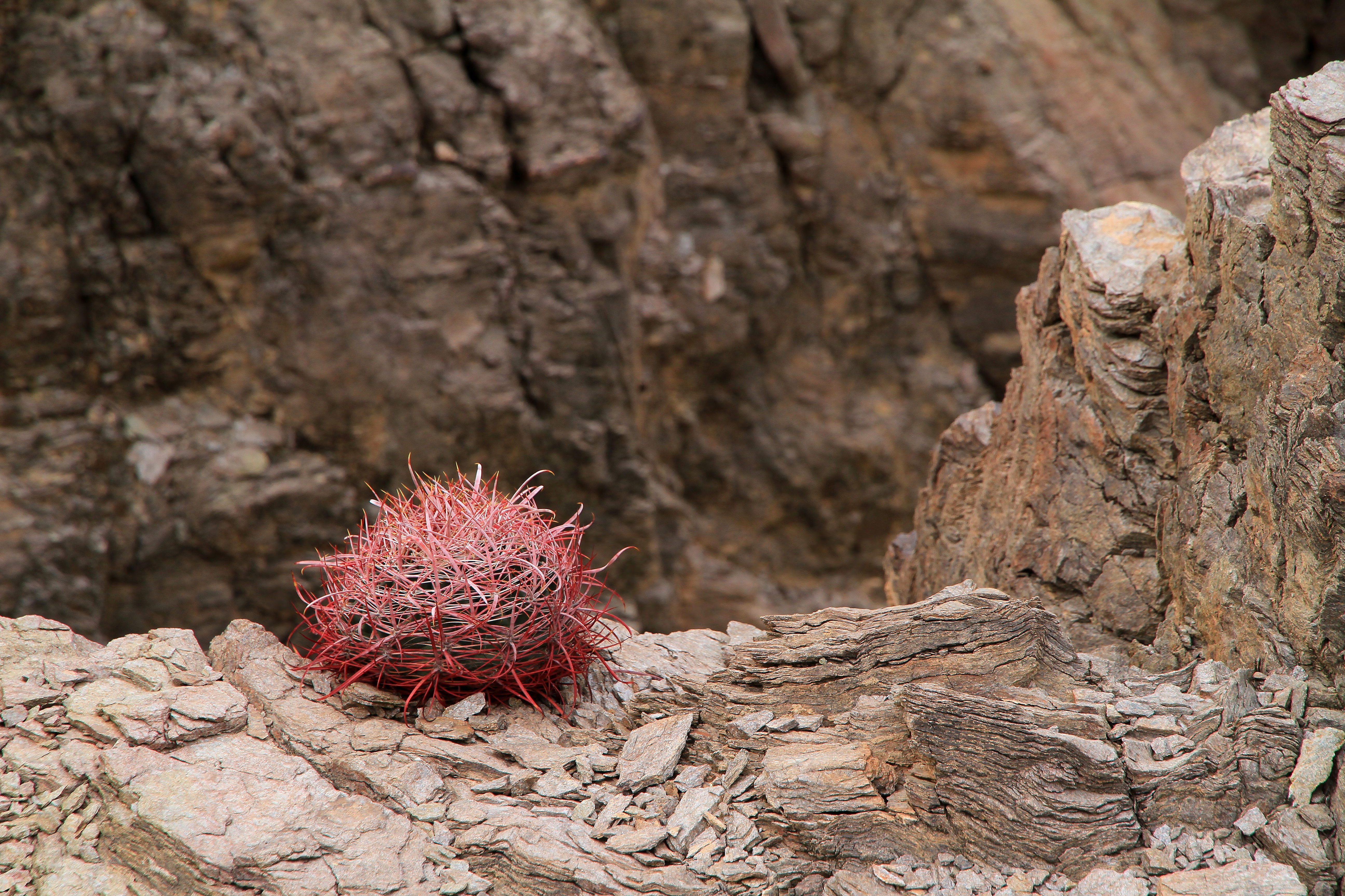 Beehive cactus found on rocky cliff face. This cactus is a small to medium-sized, globose or columnar cacti. This genus is native to arid parts of Central America, Mexico, through Arizona, New Mexico, and certain parts of Montana and Texas.