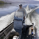 Ben Ewing, California Department of Fish and Wildlife biologist on Clear Lake doing surveys for hitch in June 2024. Credit: John Heil/USFWS