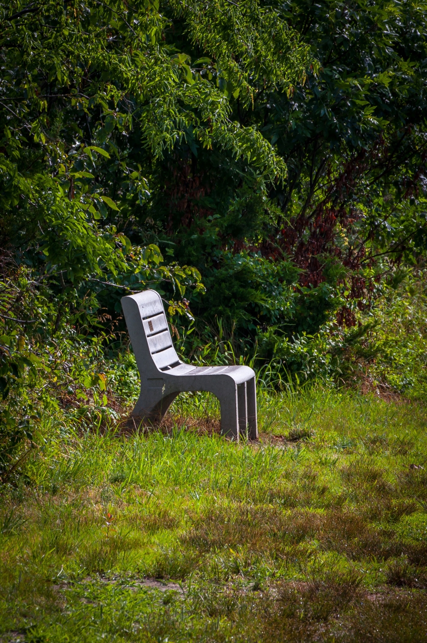 Bench on bank at Prime Hook NWR wetland.