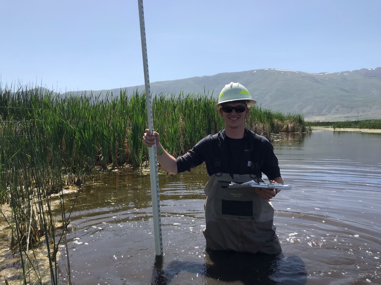 GBI Biological Science Technician Cole Van Houten helps with elevation surveys at Oxford Slough Waterfowl Production Area in preparation of an upcoming wetland enhancement project
