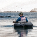 Biologist and photographer in lake