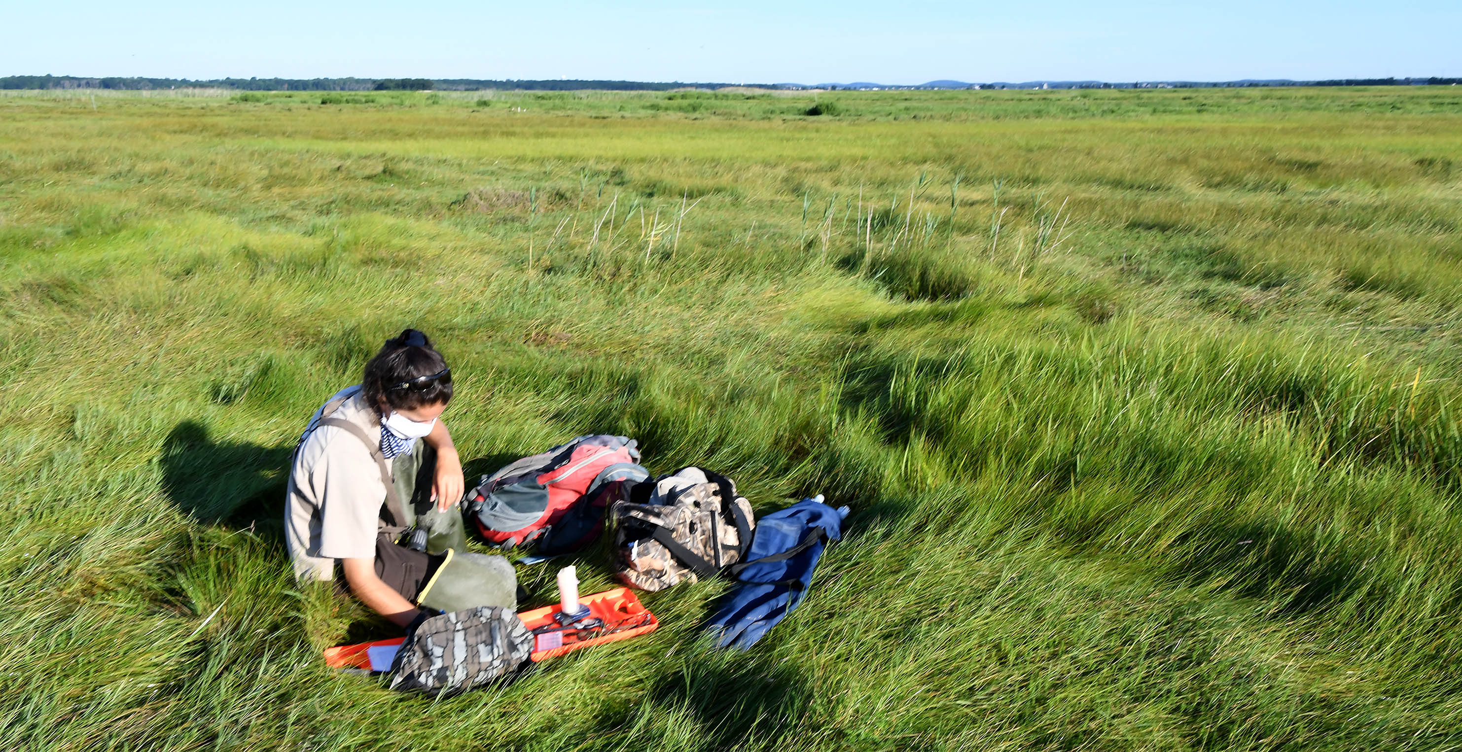A refuge biologist does salt marsh sparrow fieldwork in a salt marsh at Parker River National Wildlife Refuge in Massachusetts.