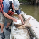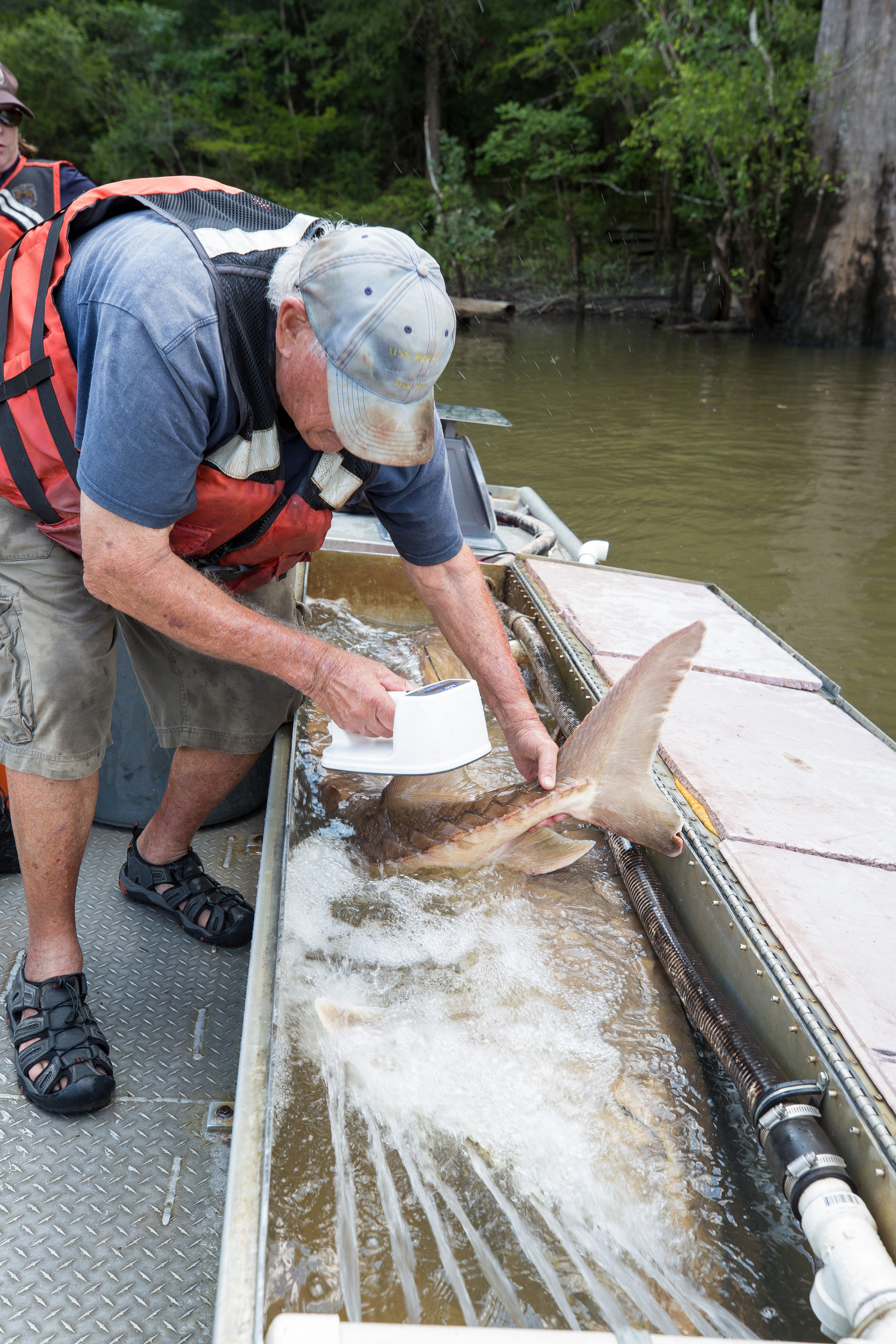 Biologist with gulf sturgeon on the Choctawhatchee River