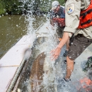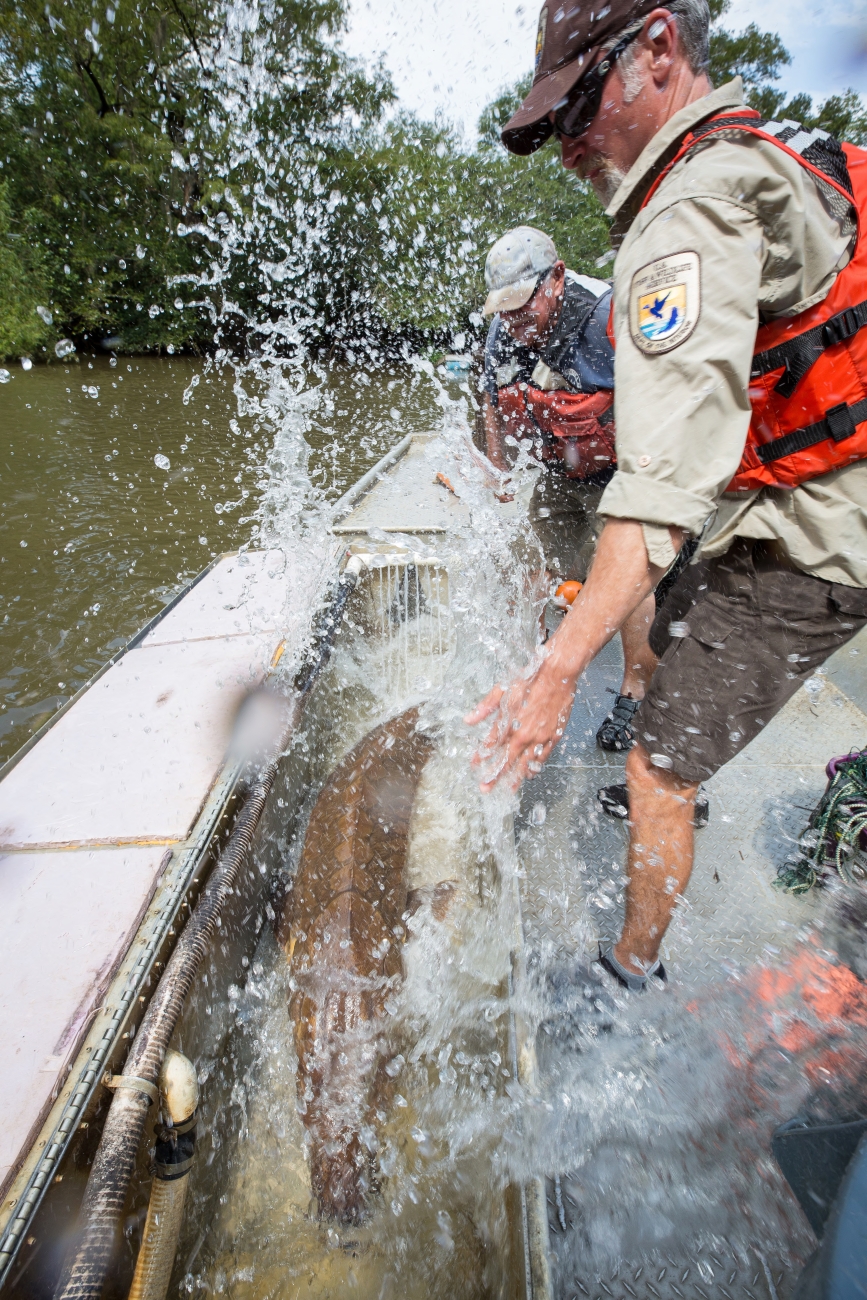 Biologist with gulf sturgeon on the Choctawhatchee River