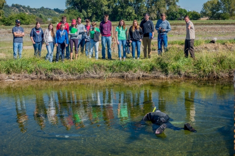 Biologist, Sam Stukel, leads a tour at Gavins Piint National Fish Hatchery