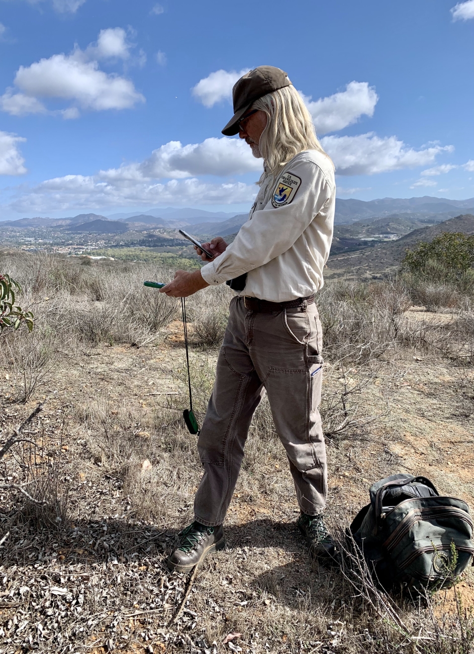 Emeritus biologist recording weather conditions at San Diego National Wildlife Refuge