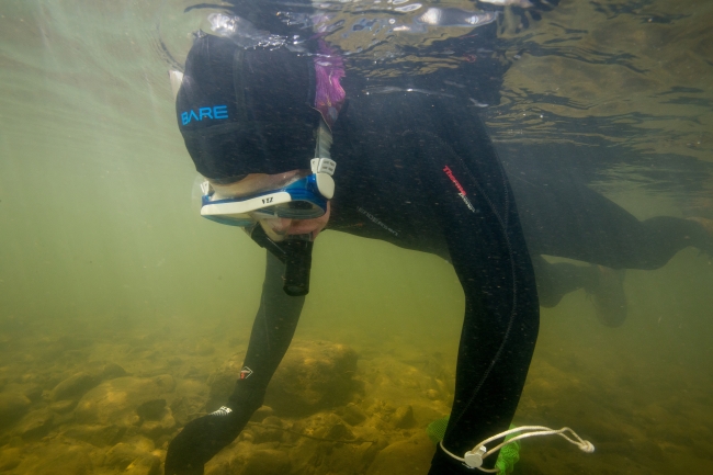 Biologist searches for freshwater mussels