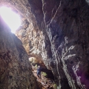 Biologist stands inside the entrance to an abandoned mine.