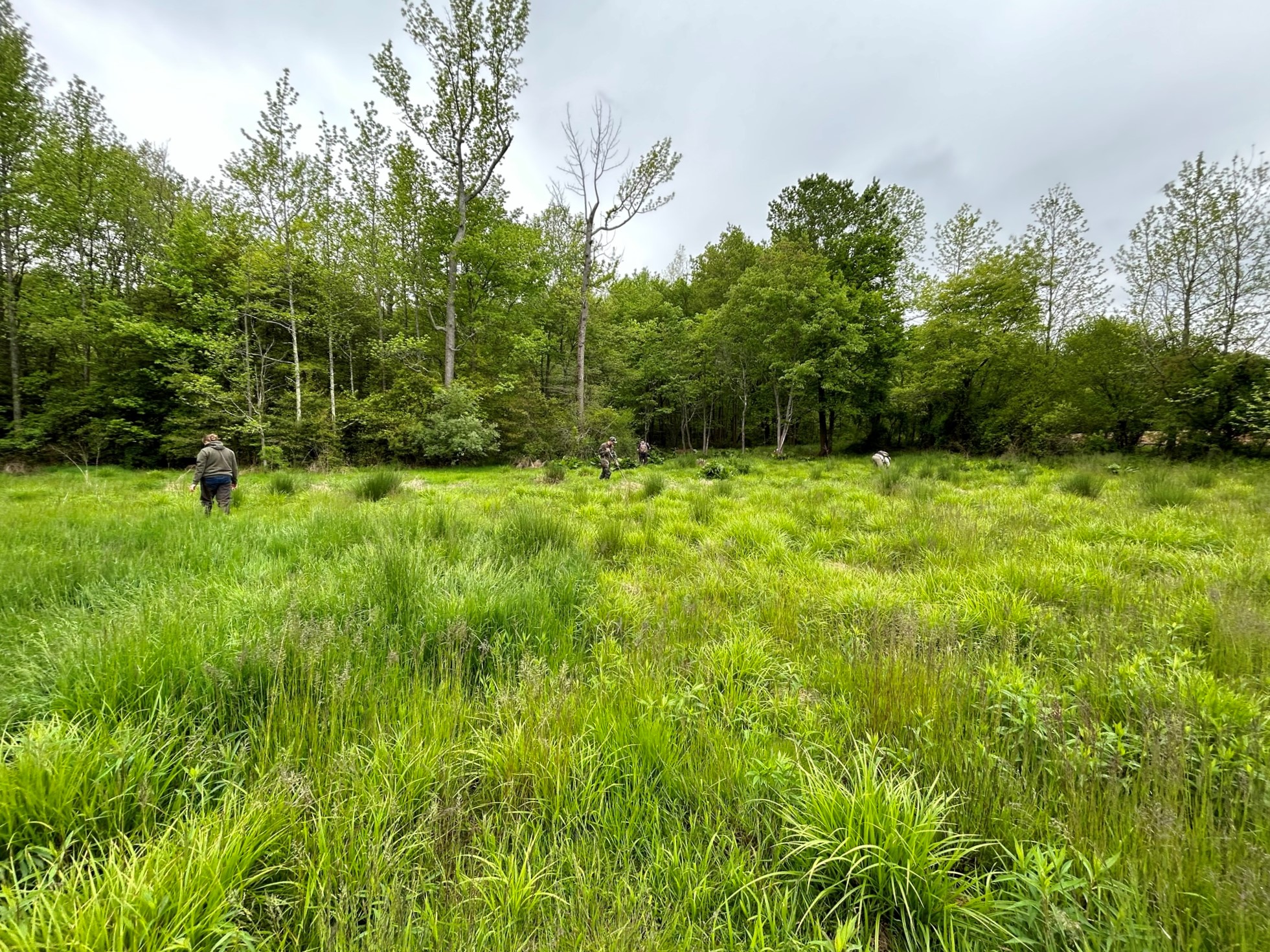 Biologists look for bog turtles in emergent wetland on agricultural land