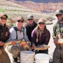 Biologists hold razorback suckers caught in the Colorado arm of Lake Powell.