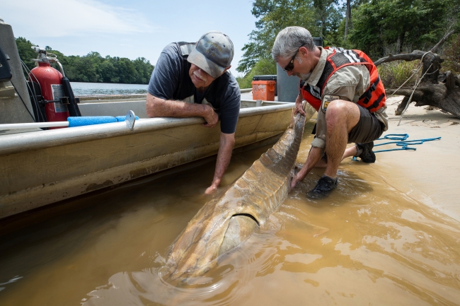 The Gulf sturgeon lives in the northern Gulf of Mexico, bays, estuaries and in major rivers in Florida, Alabama, Mississippi and Louisiana. The gulf sturgeon spends most of the year in freshwater, where it reproduces, and migrates to saltwater in the fall.