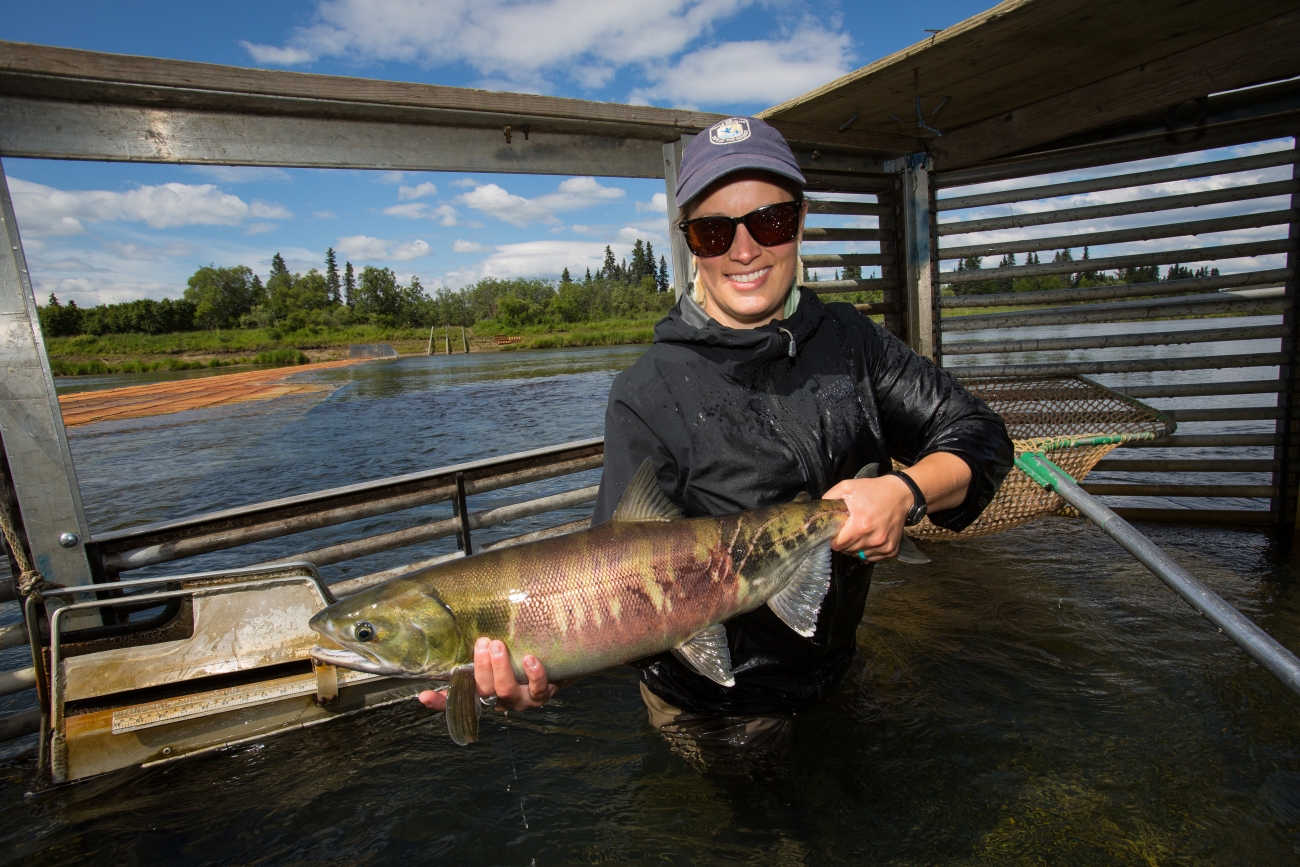 Biologists sample pacific salmon