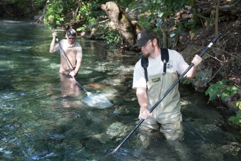 The Comal Springs are the largest in Texas and the American southwest. Seven major springs and dozens of smaller ones occur over a distance of about 4,300 feet at the base of a steep limestone bluff in New Braunfels' Landa Park. The Springs and the Comal River are home for a federally endangered species, the Fountain Darter. Edwards Aquifer,