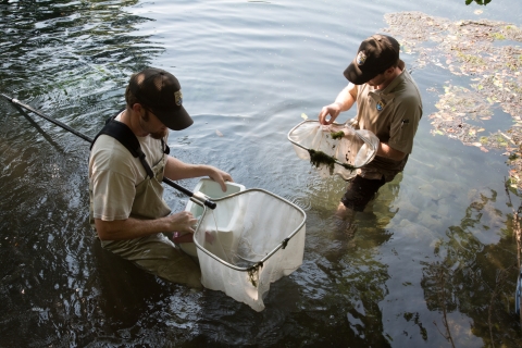 The Comal Springs are the largest in Texas and the American southwest. Seven major springs and dozens of smaller ones occur over a distance of about 4,300 feet at the base of a steep limestone bluff in New Braunfels' Landa Park. The Springs and the Comal River are home for a federally endangered species, the Fountain Darter. Edwards Aquifer,