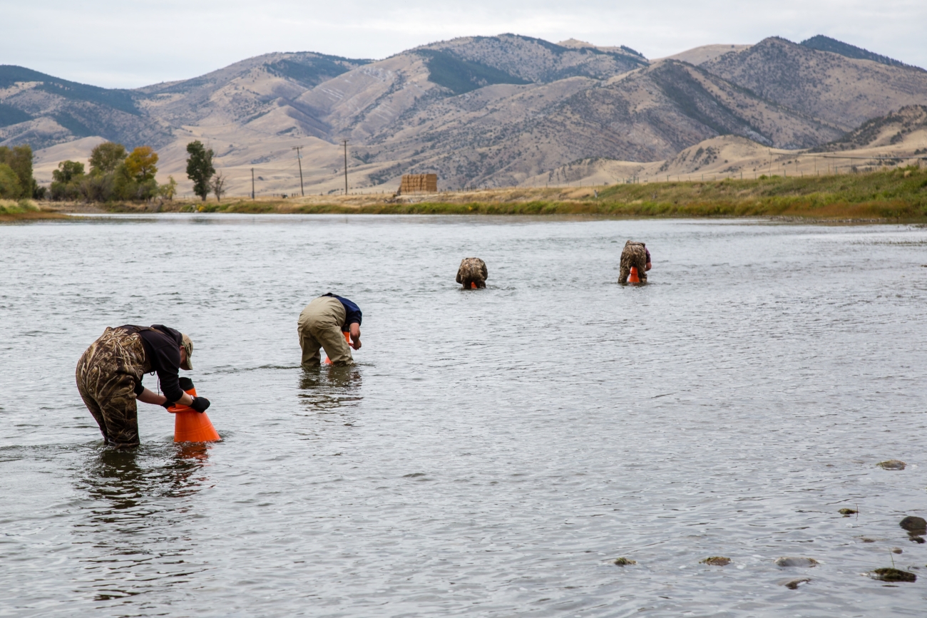 Biologists search for freshwater mussels in the Jefferson River.