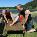 Biologists sort freshwater mussels